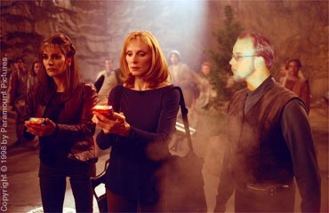 Lt. Cmdr. KaiRo does research work with Enterprise officers